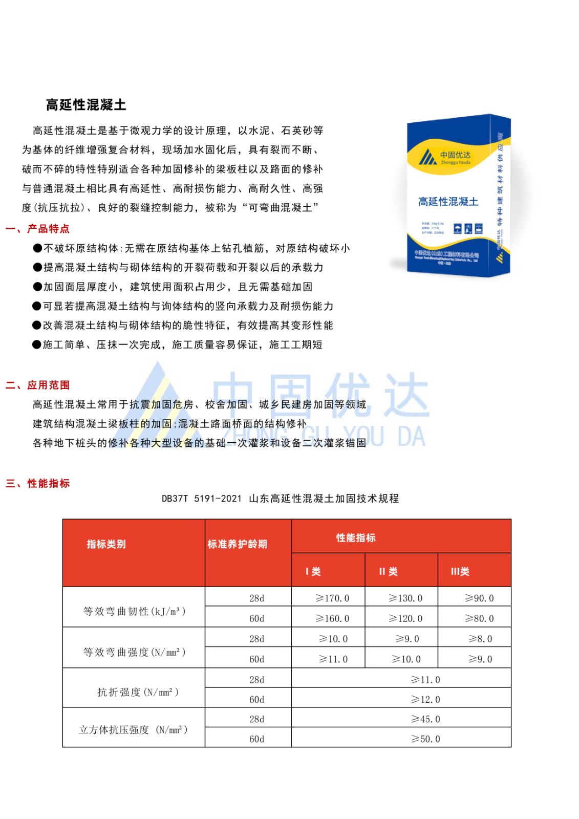 石家庄高延性混凝土 石家庄高延性混凝土是具有高抗裂性、高延展性、高韧性、高耐损伤的一种高富纤维混凝土,采用特种水泥和骨料,辅助高韧性高弹性纤维和外加剂混合而成,现场加水固化后,具有裂而不断、破而不碎的特性,用于各加固修补的梁板柱以及路面的修补。